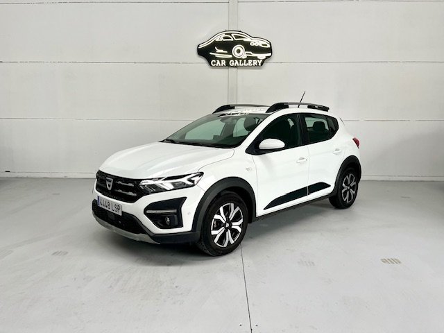Dacia Sandero Stepway 100cv GASOLINA. 6 velocidades Manual. Año 2021 y 35.000km. Volante de cuero multifunción. Sensor de lluvia y luz. Llantas de aleación en 16". Paquete de iluminación interior . Velocidad de crucero y limitador. Climatizador bi-zona. Cámara de visión trasera. Sensores delanteros y traseros de parking. Asientos regulables en altura y profundidad. Pantalla multimedia con Bluetooth - Carplay. Faros Led. Sistema estar stop. Diferentes modos de conducción.
